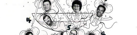 Front row (L-R): Sylvie Derome, Maurice St-Pierre, Rick Folkman, Randy Helgason, Gaétan Melançon, Serge Nadeau, Randy O'Neil.